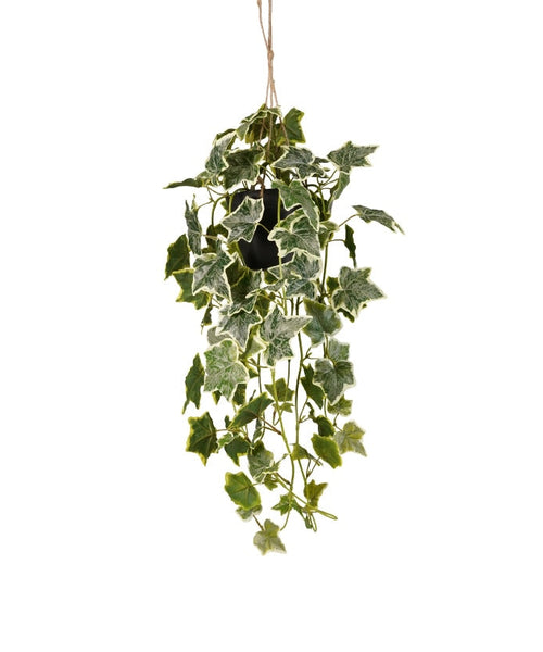Emerald Kunst Hangplant Ivy in pot groen/wit 70cm